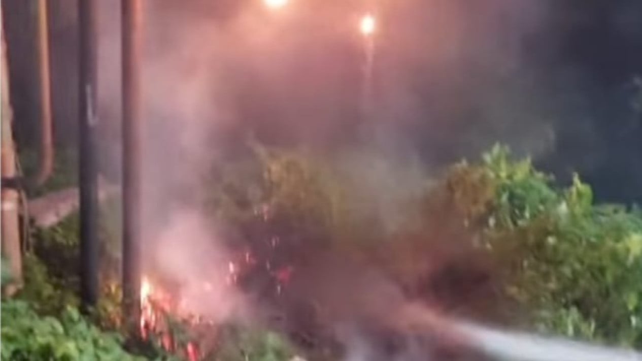 Damkar Badung berupaya memadamkan kebakaran